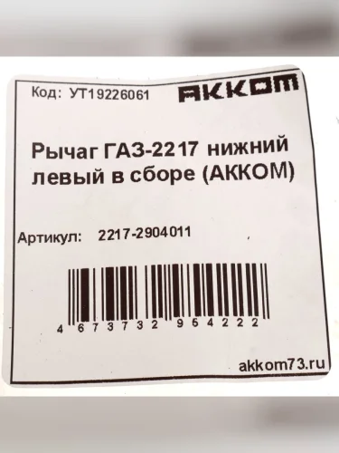 | Наименование | Рычаг подвески ГАЗ-2217 нижний левый в сборе АККОМ в Симферополе Крым |